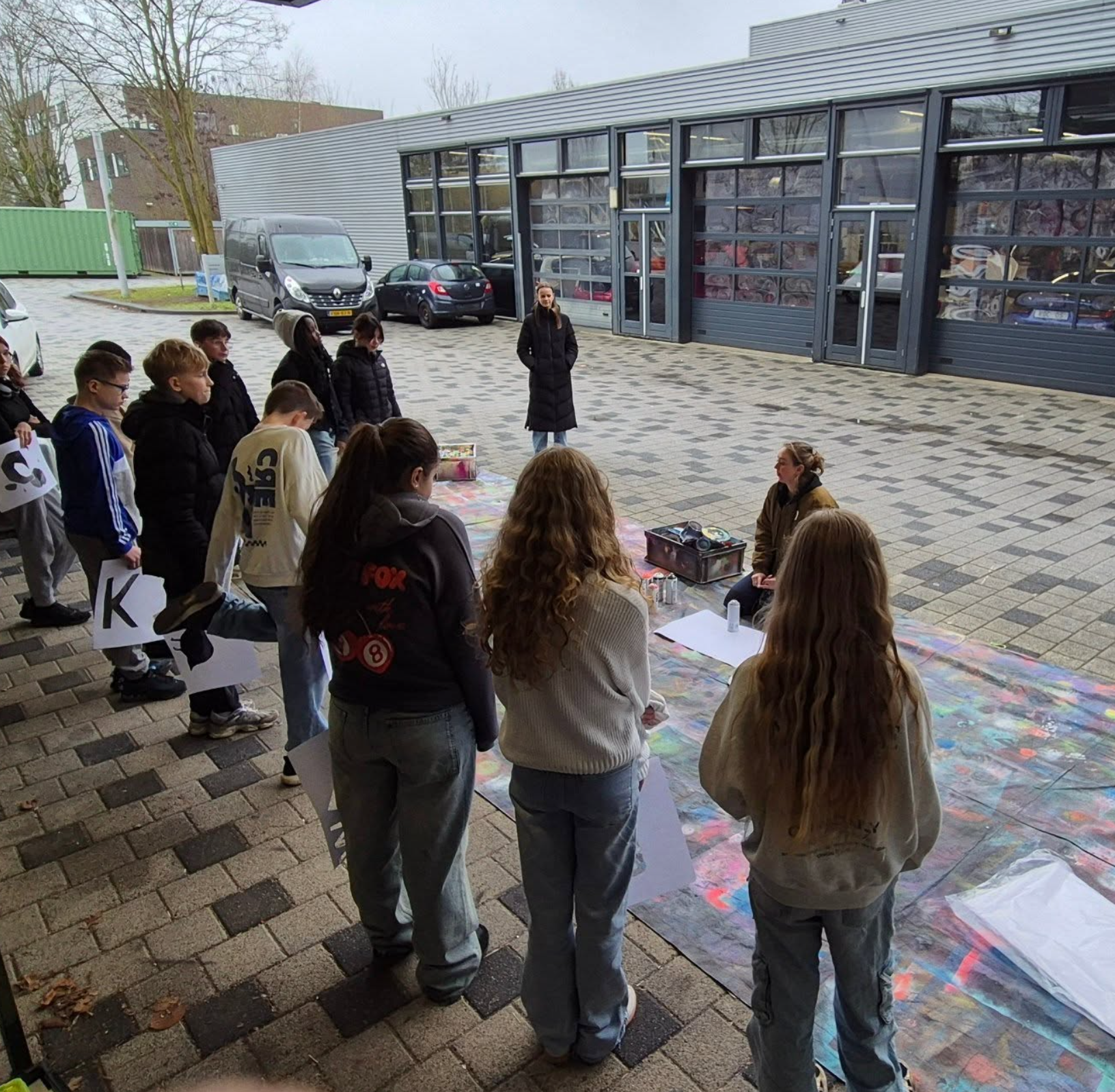 Door ons verzorgd: Potloden, spuitbussen, afdekzeilen en lesmateriaal
